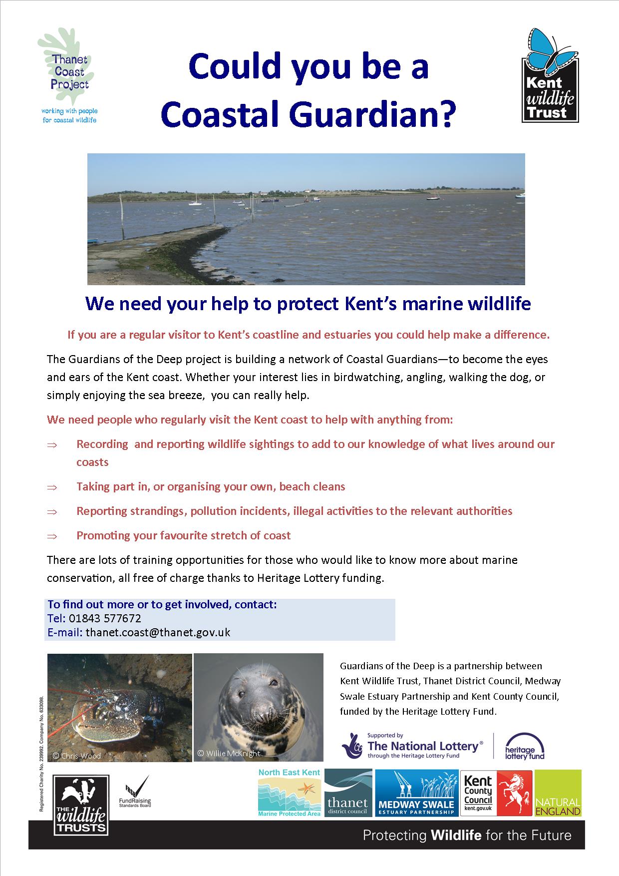Coastal Guardians* - the development of community champions: learning from the successful Thanet coastal wardens around NE Kent, guardians will become the eyes and ears of the coast, surveying and sharing information with conservation organisations.